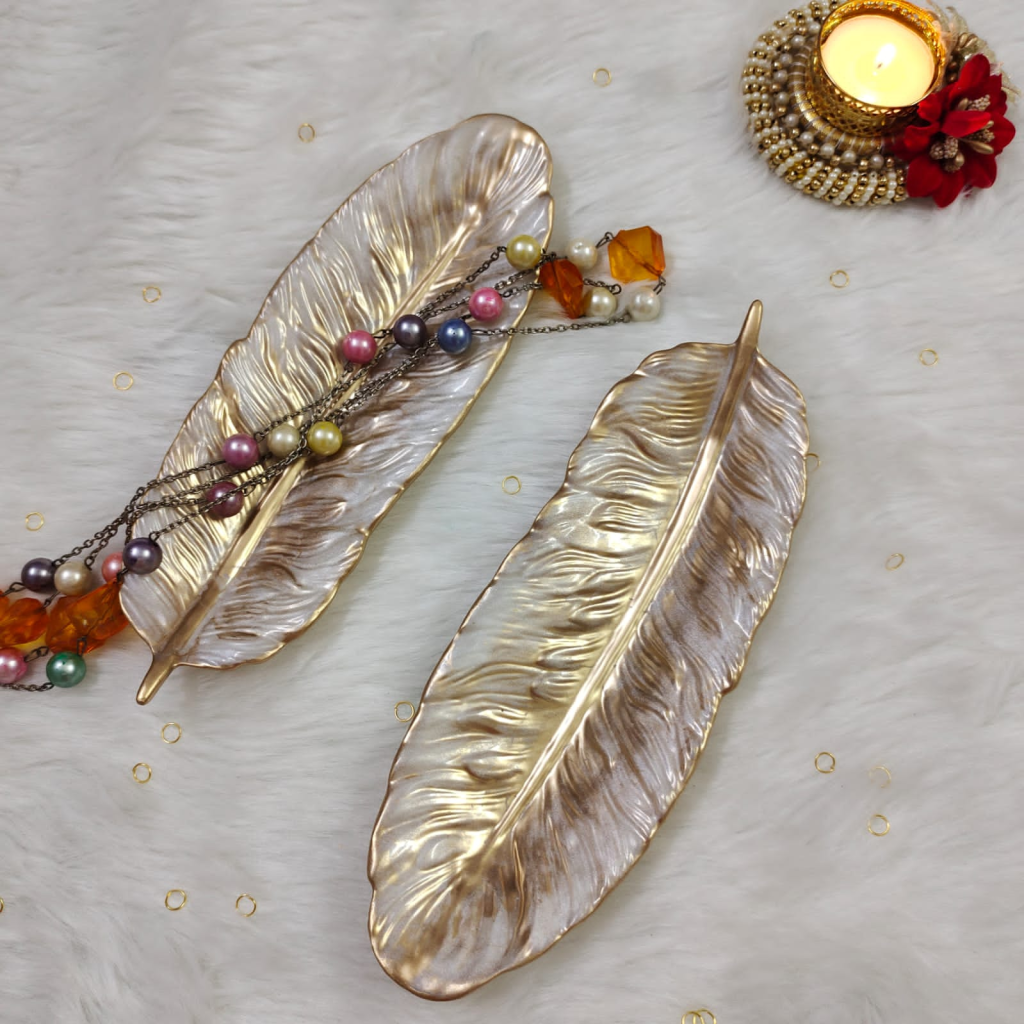 Doğanın zarafetini modern dekorla buluşturan Altın Yaprak Tütsülük, detaylı yaprak dokusu ve göz alıcı altın & sedef tonlarıyla bulunduğu ortama lüks bir dokunuş katar. El işçiliğini yansıtan ince kıvrımları sayesinde hem estetik bir dekor objesi hem de fonksiyonel bir tütsülük olarak kullanılabilir.