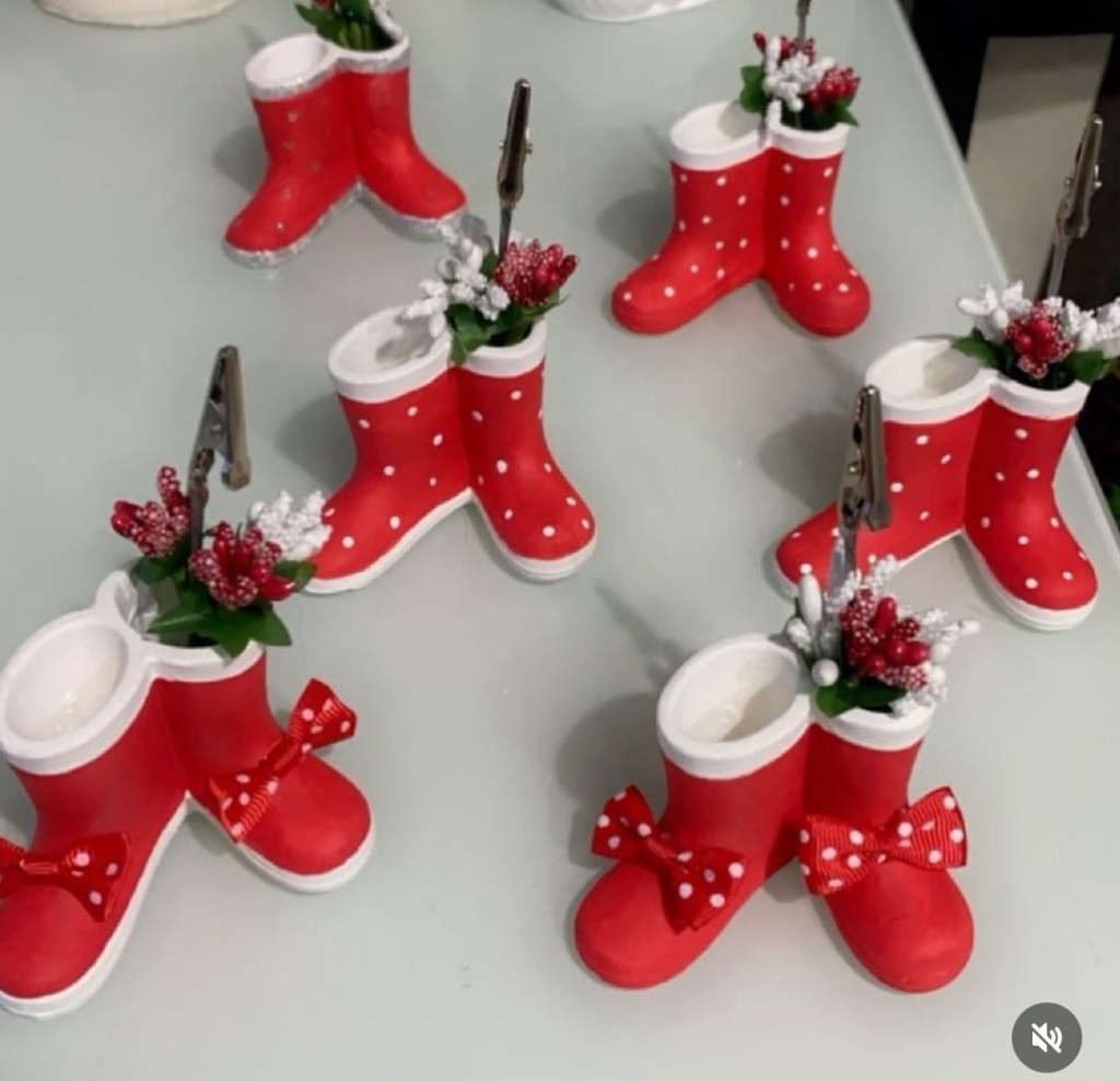 Kırmızı puantiyeli çizme formunda tasarlanmış bu dekoratif notluk / fotoğraflık, evinizin her köşesine neşeli bir hava katar. Üst kısmındaki metal klips sayesinde notlarınızı, fotoğraflarınızı veya küçük kartlarınızı kolayca sergileyebilir, alt bölümdeki minik çiçek detayları ile sıcak bir dekor oluşturabilirsiniz. Şömine üstü, çalışma masası veya çocuk odası için ideal bir dekoratif aksesuardır.