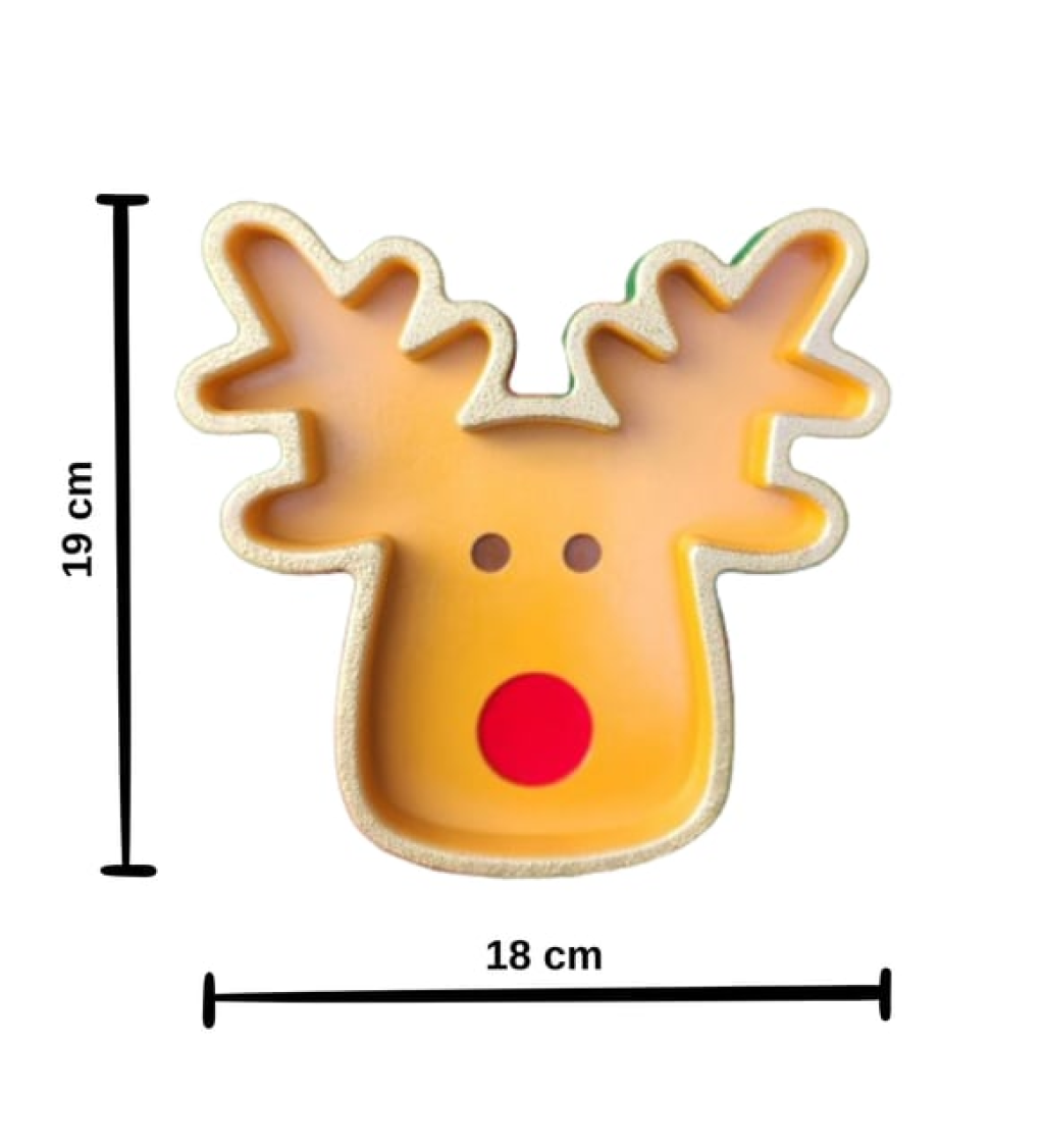 Bu sevimli geyik şeklindeki çerez tabağı, yılbaşı ve özel gün sofralarınıza eğlenceli bir dokunuş katmak için tasarlanmıştır. Dekoratif görünümü sayesinde yalnızca sunumlarda değil, masa üstü süslemelerinde de keyifle kullanılabilir.