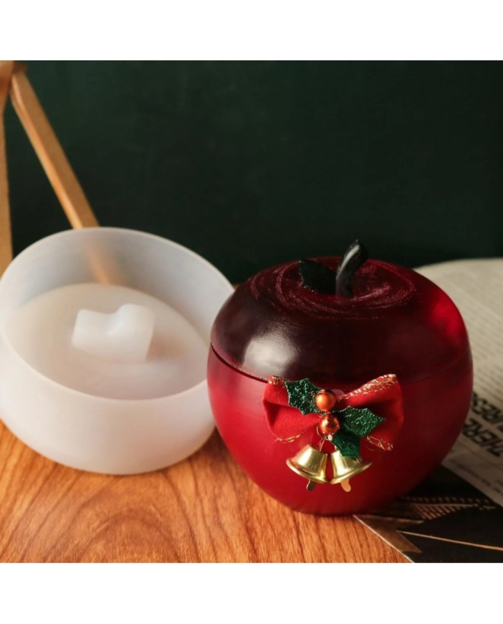 Noel elması kalıbı, mum yapımı, epoksi kalıbı, beton kalıbı, dekoratif kalıp, elma tasarımı, silikon kalıp, DIY projeleri, noel teması, el yapımı kalıp.